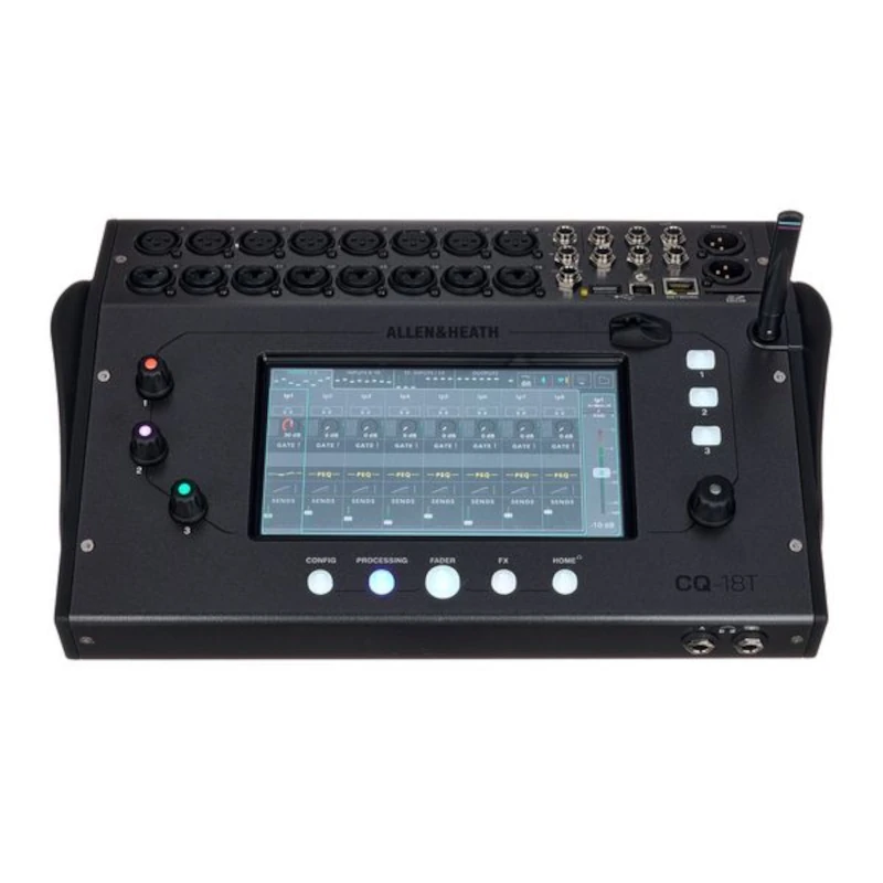 Der Allen & Heath CQ-18T ist ein ultra-kompakter digitaler Mixer mit 19 Eingängen, 6 Aux-Ausgängen, Touchscreen, WiFi, Bluetooth, 96kHz Processing und umfangreichen Effekten für vielseitige Anwendungen.