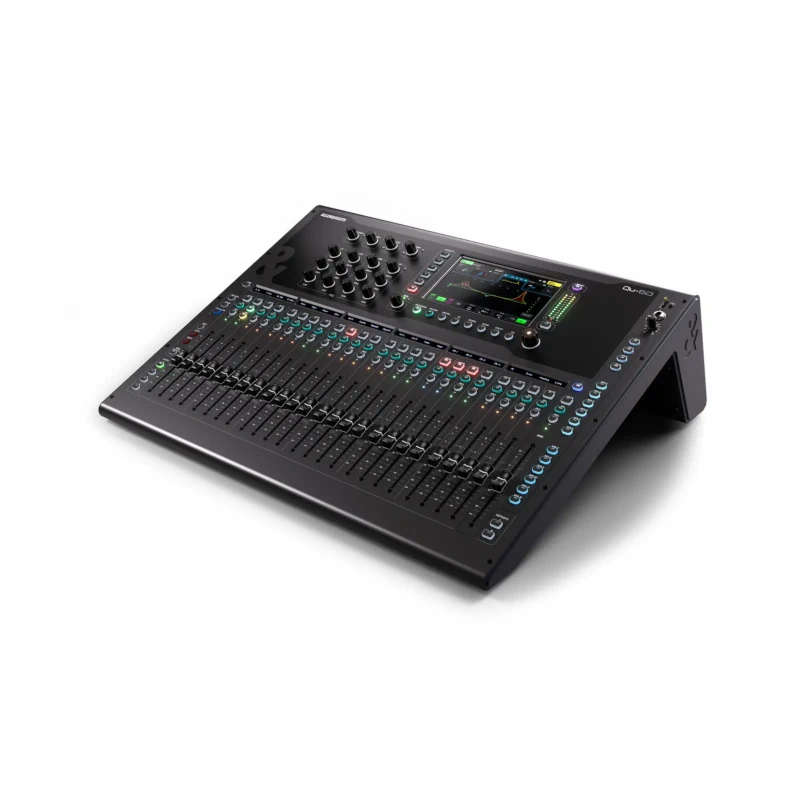 Der Qu-6D bietet eine benutzerfreundliche Oberfläche mit einem 7-Zoll kapazitiven Touchscreen, der eine einfache Navigation durch Kanäle, Bussen und Effekten ermöglicht. Ergänzt wird die Bedienung durch 25 motorisierte 100mm-Fader, die in vier konfigurierbaren Layers zugänglich sind – so behalten Anwender auch bei komplexen Setups stets den Überblick. Acht individuell belegbare SoftKeys und dedicated Mute-, Select- und PAFL-Tasten bieten schnellen Zugriff auf häufig genutzte Funktionen. Die farblich anpassbaren Kanalmeter sorgen für optimale Sichtbarkeit auch bei schlechten Lichtverhältnissen.
