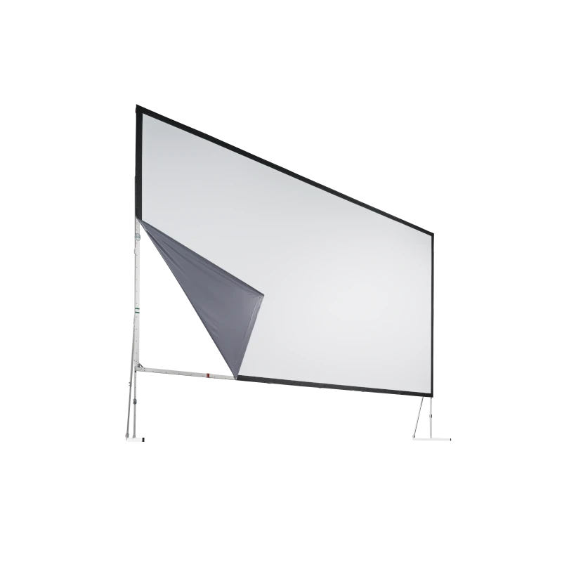 Der entscheidende Unterschied zur klassischen natur eloxierten (silbernen) Variante liegt im Oberflächenfinish des Rahmens. Während Standardrahmen durch ihre helle Aluminiumoberfläche in bestimmten Lichtsituationen sichtbar reflektieren können, ist die schwarz eloxierte Ausführung darauf ausgelegt, optisch in den Hintergrund zu treten. Das Ergebnis ist eine deutlich reduzierte Lichtreflexion im Rahmenbereich und damit eine klarere, stärker definierte Bildfläche. Besonders bei großflächigen Projektionen sorgt dies für eine bessere visuelle Abgrenzung zwischen Bildinhalt und Umgebung, was die wahrgenommene Bildqualität verbessert, ohne die Projektion selbst zu verändern.