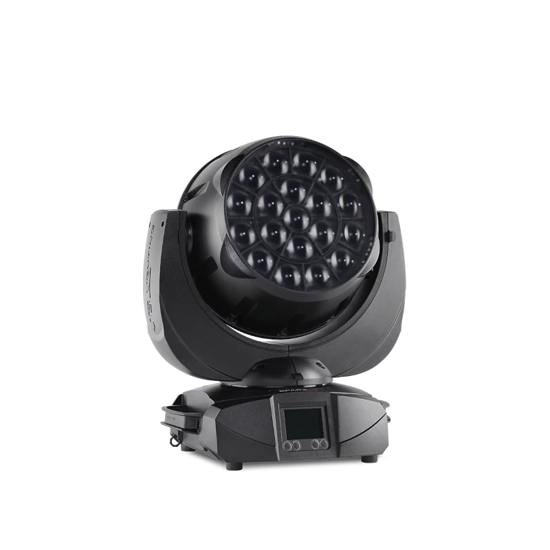 Das optische System überzeugt durch einen klar definierten Lichtstrahl mit minimalem Streulicht. Der motorisierte Zoom deckt einen weiten Bereich von 3° bis 70° ab und ist als Doppelzoom ausgeführt, bei dem zwei getrennt steuerbare Zoombereiche ringförmig angesteuert werden können. Optional ist ein Beamshape-Adapter erhältlich, mit dem sich der runde Lichtaustritt in eine ovale oder rechteckige Form verwandeln lässt – ideal für spezielle Projektionen oder kreative Looks.