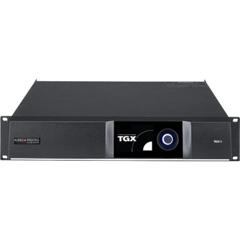 Die Kling & Freitag TGX10 ist eine professionelle 4-Kanal DSP-Endstufe für anspruchsvolle Live-, Touring- und Installationsanwendungen, bei denen maximale Leistung, höchste Betriebssicherheit und kompromisslose Audioqualität gefordert sind. Als Teil der renommierten K&F TGX Serie wurde sie speziell für den Betrieb aller Kling & Freitag Lautsprechersysteme entwickelt und vereint modernste Verstärkertechnologie mit vollständig integriertem DSP, Dante-Netzwerkfähigkeit und extrem hoher Leistungsdichte in nur 2 Höheneinheiten.