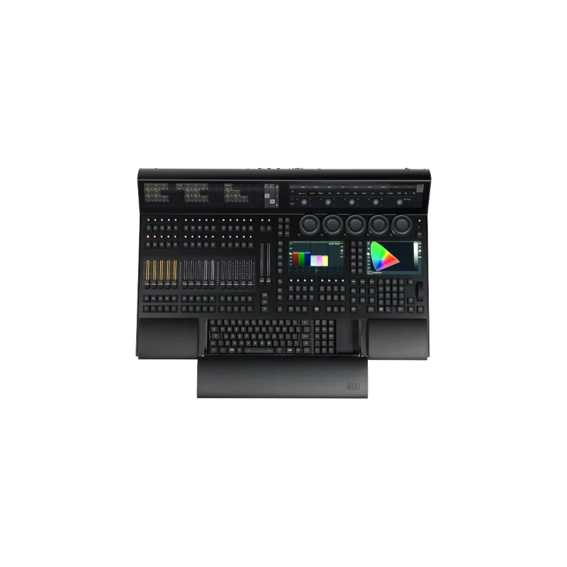 Besonderes Augenmerk wurde auf Ergonomie und Flexibilität gelegt. Die Konsole verfügt über eine integrierte Tastaturschublade, klicklose Tasten mit Hintergrundbeleuchtung und eine Silent-Version der Hardware – ideal für geräuschsensible Umgebungen wie Theater oder Broadcast-Studios. Die motorisierten Fader sind mit farblich hinterleuchteten Light-Pipes ausgestattet, um Playbacks klar voneinander unterscheidbar zu machen.