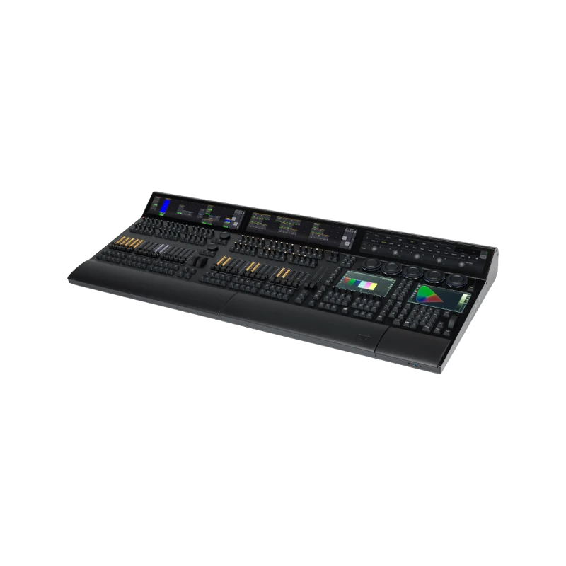 In der täglichen Anwendung überzeugt die Konsole durch drei interne Letterbox-Multitouch-Screens, zwei interne Command-Touchscreens, 120 Playbacks, 30 motorisierte Fader, 16 zuweisbare x-Tasten sowie 71 RGB-hinterleuchtete Encoder und 5 Dual Encoder. Diese Vielzahl an Bedienelementen ist ideal für Liveshows, bei denen Geschwindigkeit und Übersicht entscheidend sind. Hinzu kommen zwei Level Wheels, ein integriertes Tastaturfach und eine eingebaute USV für maximale Betriebssicherheit.