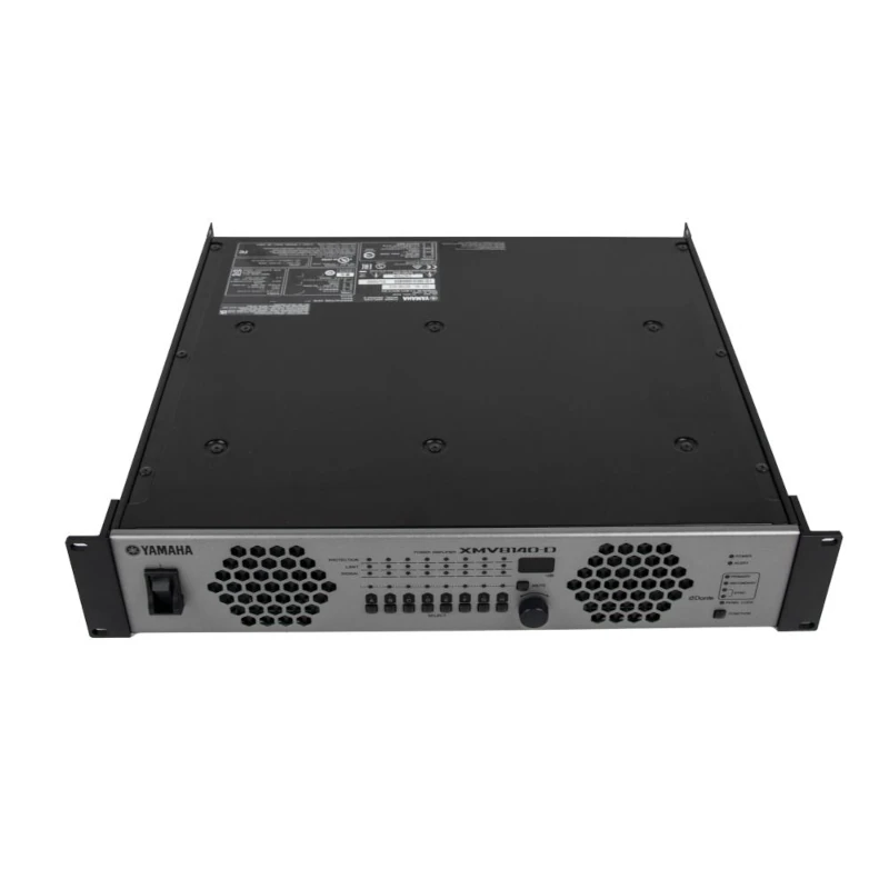 Technologisch basiert der XMV8140-D auf einer hoch effizienten Class-D-Endstufentopologie, die von Yamaha weiterentwickelt wurde. Eine neuartige, patentierte Schaltung hebt den Wirkungsgrad der Ausgangsstufe auf über 90 % an. Das Ergebnis ist ein deutlich reduzierter Energieverbrauch bei gleichzeitig geringerer Wärmeentwicklung. Ergänzt wird dies durch ein Schaltnetzteil mit Power Factor Correction (PFC), das für eine stabile Netzlast sorgt, den Stromverbrauch optimiert und Netzrückwirkungen minimiert. Diese Eigenschaften machen den Verstärker besonders geeignet für den Dauerbetrieb in professionellen Installationen.