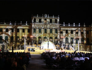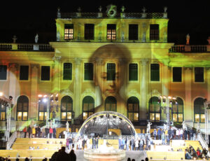 Sie wurde live auf ORF 1, dem wichtigsten öffentlich-rechtlichen Fernsehsender in Österreich, übertragen und bot eine spektakuläre Video-Mapping-Show auf der Fassade des Schlosses Schönbrunn in Wien aus dem 18. Jahrhundert: eine Mapping-Leinwand, die 11 Millionen Pixeln entspricht, mit freundlicher Unterstützung des Wiener Projektionsspezialisten 4youreye.