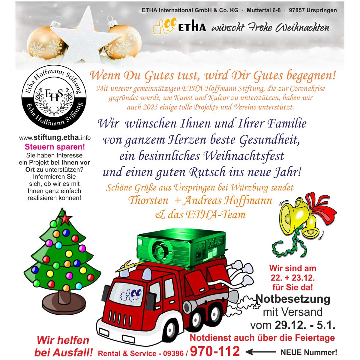 Weihnachtsgruß, ETHA fördert, Notdienst
