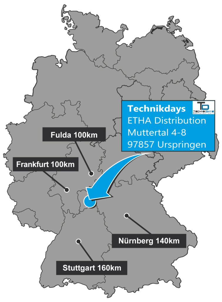 Hier findet das diesjährige Workshop- & Schulungsevent „Technikdays“ statt. Über 20 führende Hersteller haben bereits zugesagt und sind für Sie in Urspringen vor Ort. Geballte Infos zu neuesten Techniklösungen gibt es direkt von den Marktführern, die wir über unsere Distribution anbieten. Sprechen Sie Ihre Techniklösungen und Messeangebote mit besten Einkaufspreisen direkt vor Ort durch!